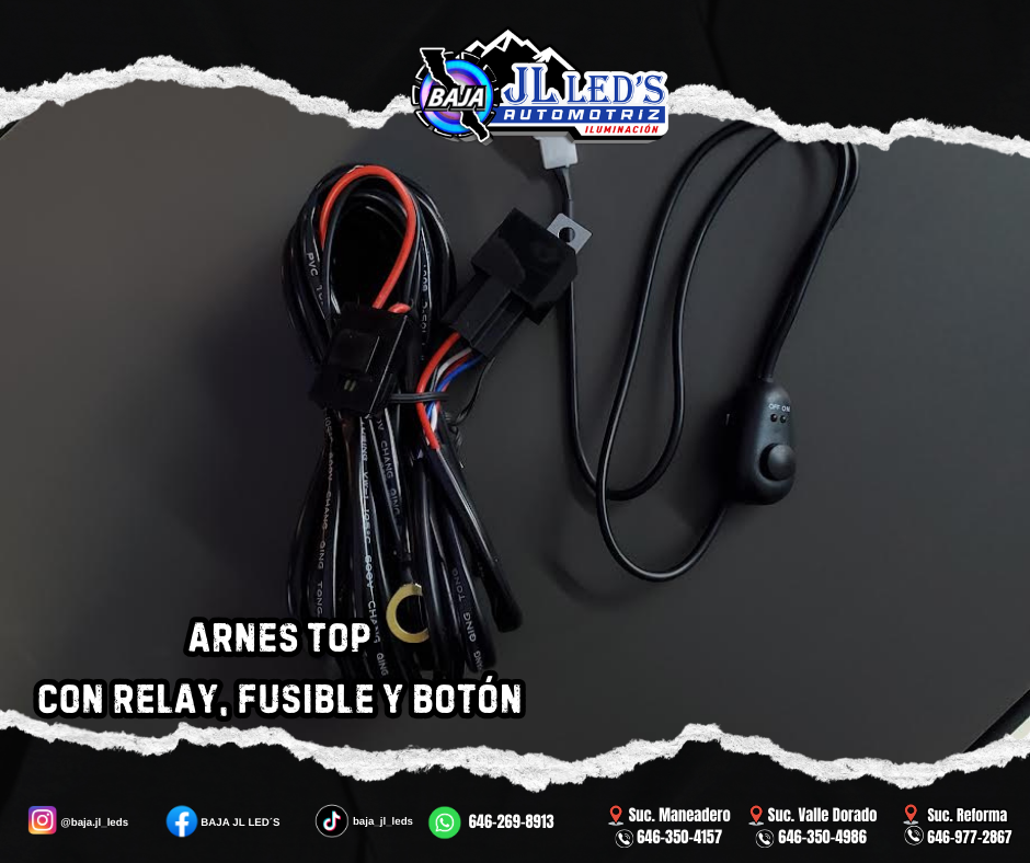 Arnes de Cableado para instalaciones de iluminacion: Incluye Relay, Fusibles, Switch