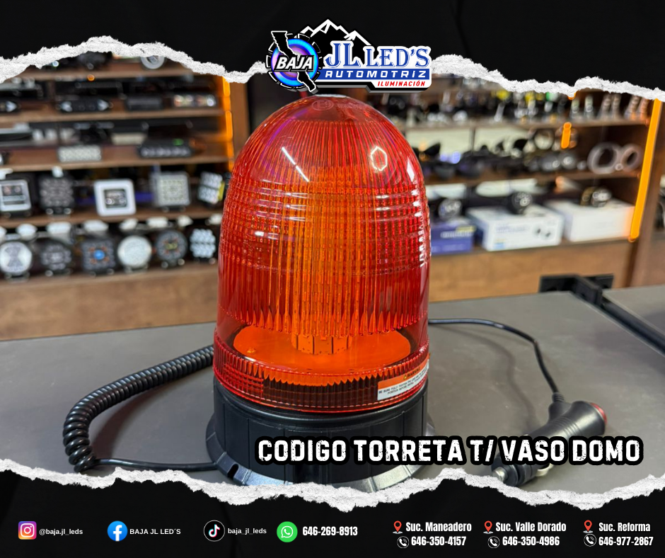 Codigo Torreta t/ Vaso DOMO grande 30 LED’S 90W 12-28v Ambar funciones pz 30 LEDS Tipo: DOMO Potencia: 90w Voltaje: 12-28v Mas de 16 Funciones
