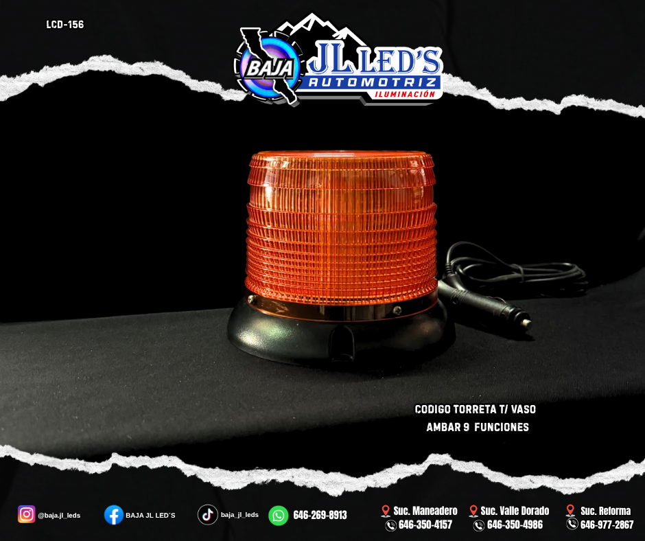 Codigo Torreta t/ Vaso LED’S 30W 12-30v Ambar 9 funcionespz