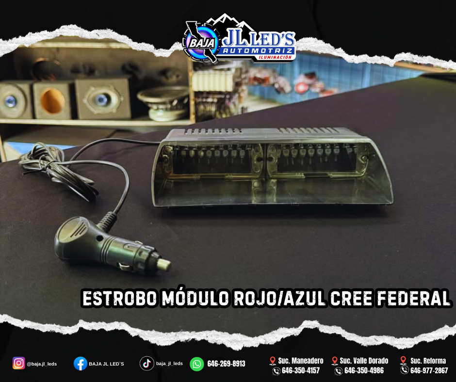 Estrobo 2 Modulos Rojo/Azul CREE federal signal 12v a 30v kit Color: Rojo/Azul Voltaje: 12-30v Diodo: CREE Federal Signal