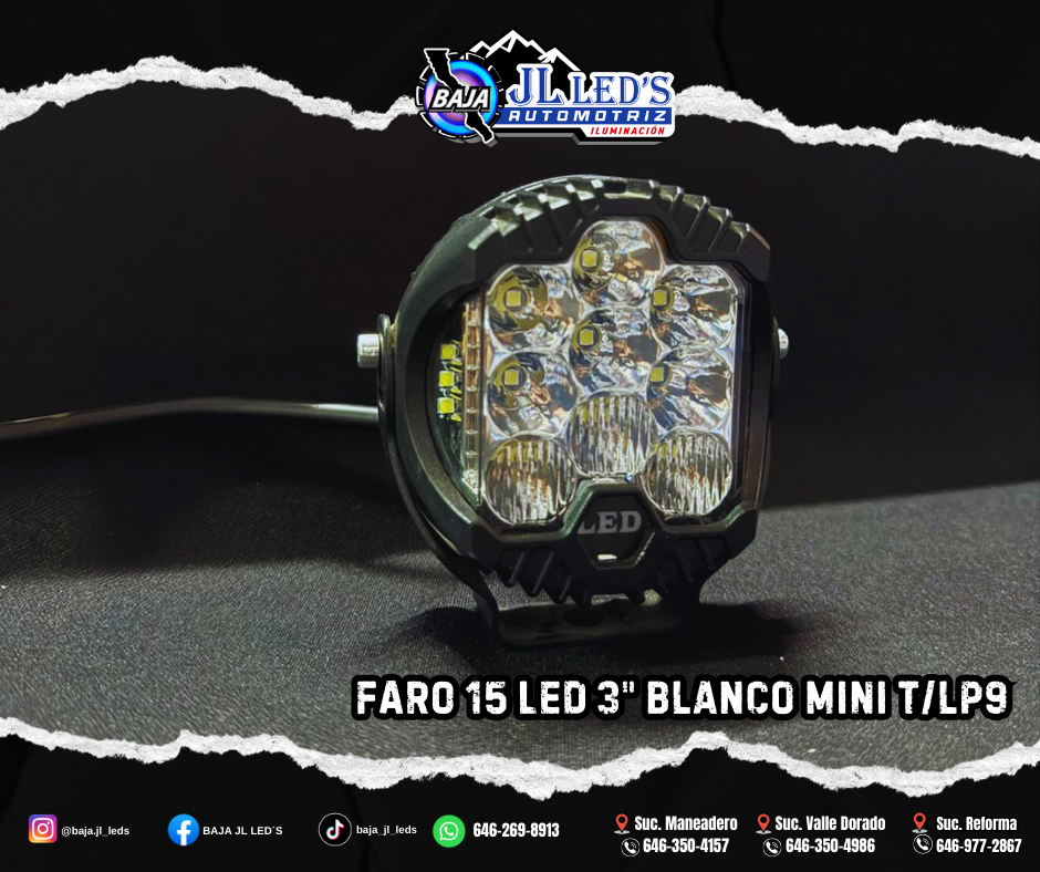 Faro 15 led 3″ BLANCO mini t/LP9 9-30V 33W par Leds: 15 Dimensiones: 3″ Voltaje: 9-30v Potencia: 33w