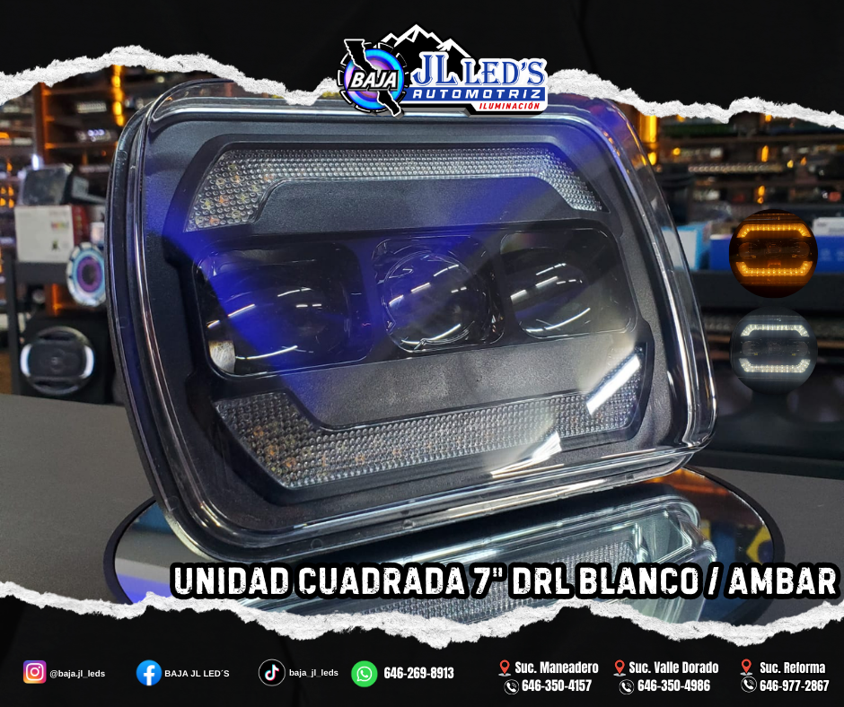 Faro Unidad 7″ leds cree 3 lupas ~ drl blanca y amarilla 9-30v blanco fijo 6500k par Modelo: Lupa Alta y Baja Formato: Cuadrado Lumens: 6500K Potencia: 18-36w Voltaje: 9-30v Protección: IP67 DOT SAE