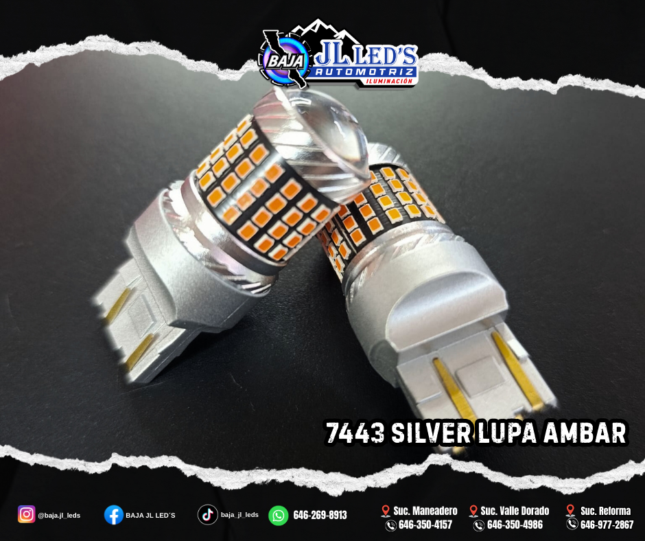 Foco led 74433 Silver lupa Amarillo / Ambar Multi-chip 10W 12-60v 1870lm canbus par Medida: 74433 Color: Ambar Temp: 3000 K 10 watts Lumens: 1870 Cambus EMC Bulbo para: -Cuarto -Direccional -Stop   Corroborar medida con su vehiculo.