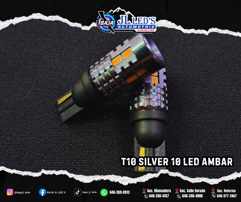 FOCOS T10/158 2.2W SILVER 10 LED AMARILLO / AMBAR 3000K 9-60V 1200LM CON CANBUS PAR