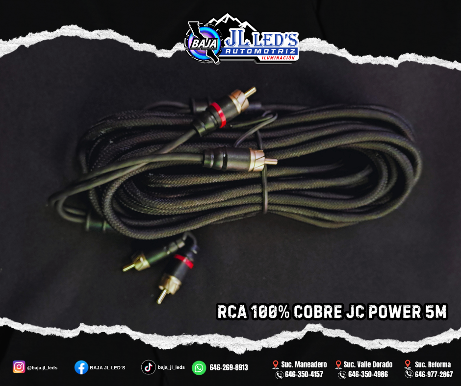 PLOGA 100% COBRE RCA 4 CANAL 18FT / 5.5M DOBLES JCPOWER RS-RCA18ELITE-4CH PZ