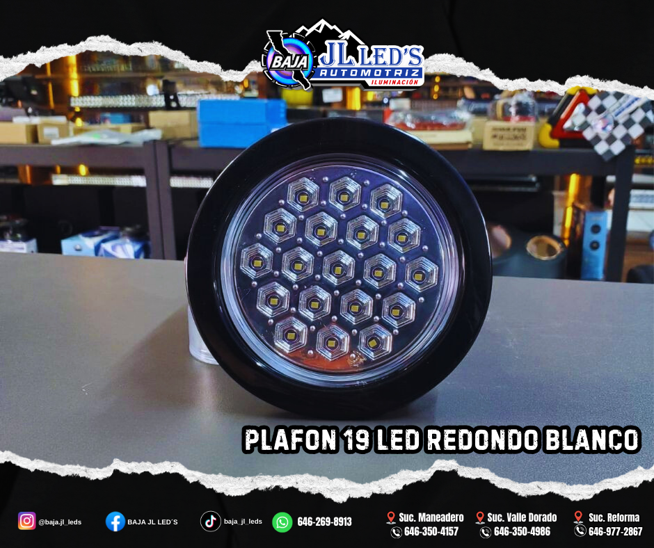 Plafon 19 led redondo BLANCO c/empaque negro real multifuncion 10-30v pz Multifuncion: Stop, Cuarto, Direccional, Estrobo, Reversa. Voltaje: 10-30v Potencia: 10-30w