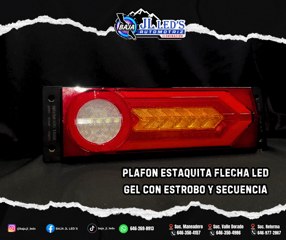 PLAFON ESTAQUITA 35.5X 10.5XCM 37 LED´S 111W 12-24V GEL ALTA Y BAJA LED LUZ FIJA Y ESTROBO FLECHA LED CAMINANDO par Alta Baja Luz fija Reversa Direccional Dimesiones: 35.5cm x 10.5cm x 37cm