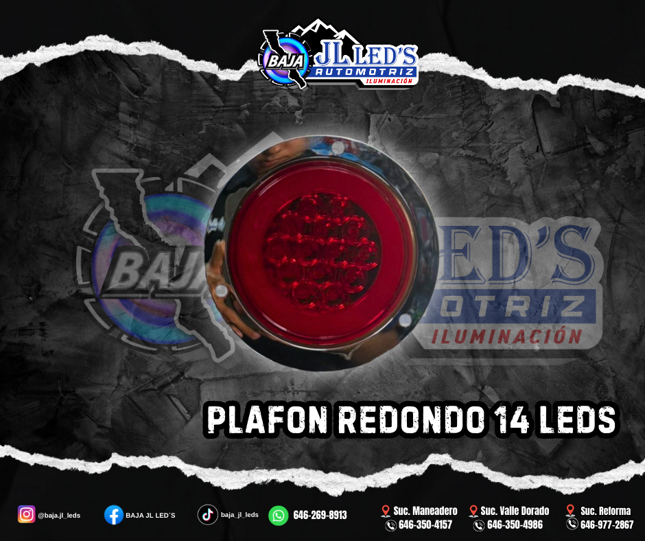 Plafon Redondo 14 led’s ojo angel rojo REAL cromo desmontable10-30V 4.0INCH PAR Potencia: 10-30 watts Voltage: 12-24v Tamaño: 4 pulgadas
