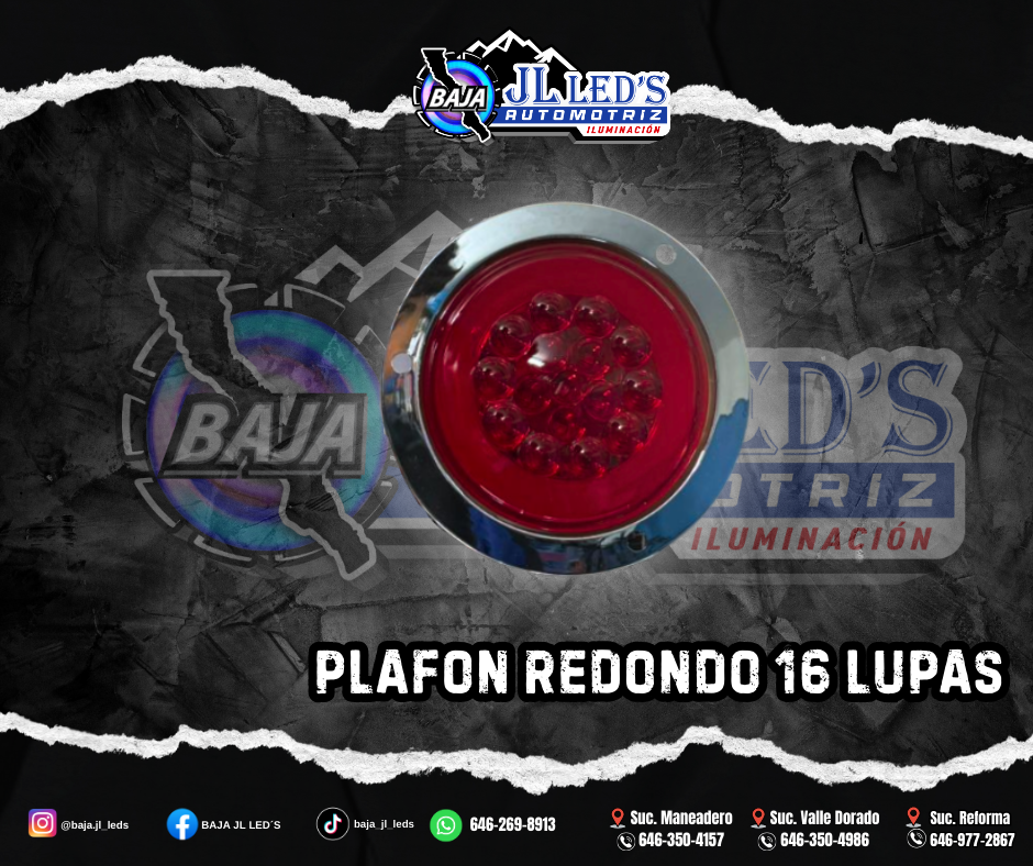 Plafon Redondo 16 led’s LUPAS ojo angel rojo REAL cromo desmontable 10-30V 4.0INCH PAR Potencia: 10-30 watts Voltaje: 10-30 v Diametro: 4 pulgadas