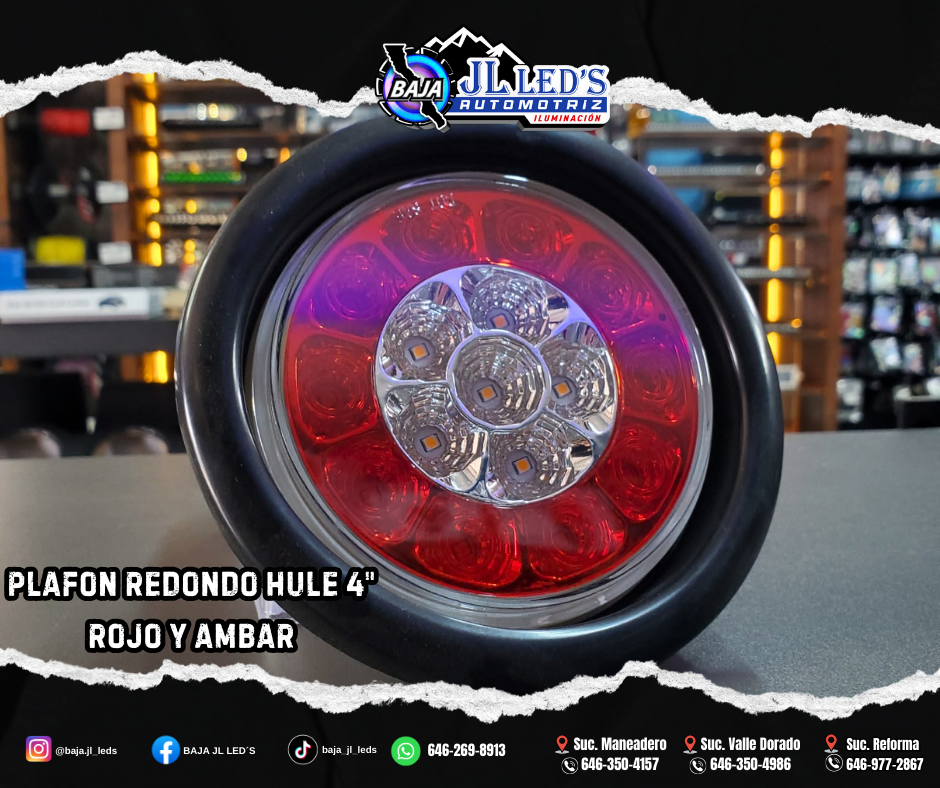 Plafon redondo HULE 4″ ROJO y AMBAR centro luz de posicion