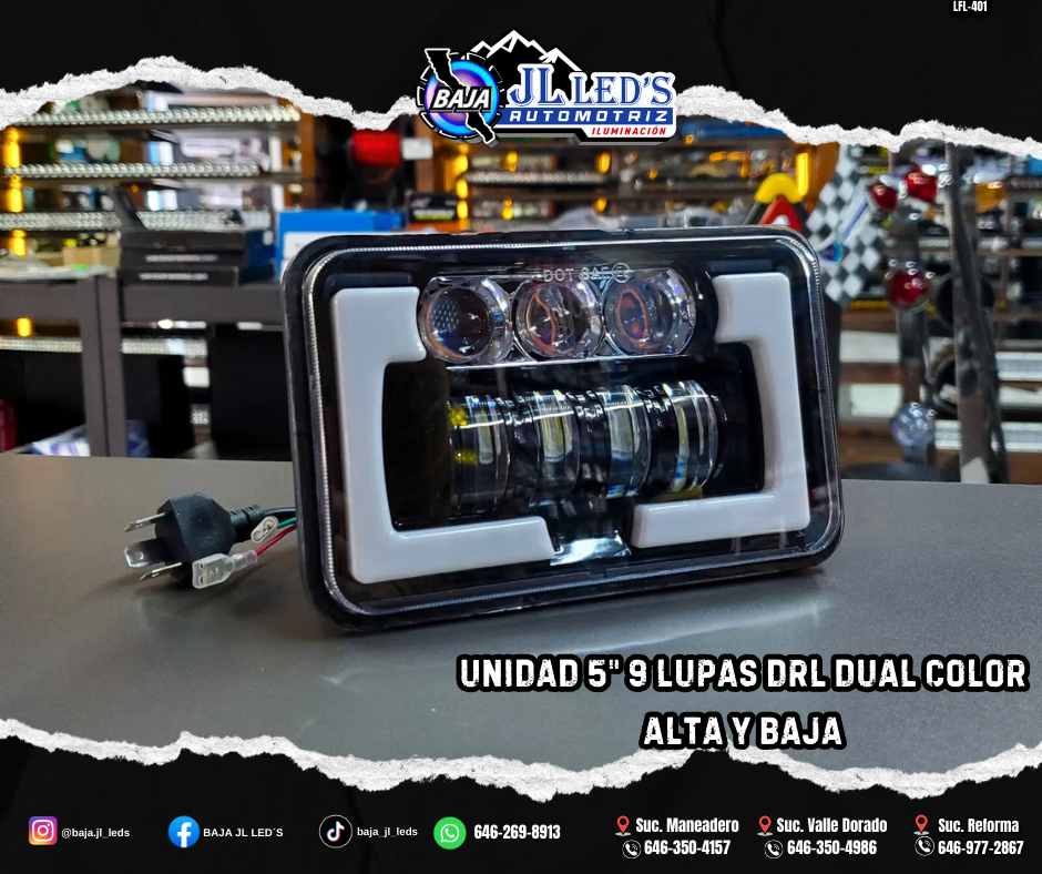 Unidad 5″ 9 LEDS lupas drl dual color 9-30V 45W 6500-7000K ALTA/BAJA par