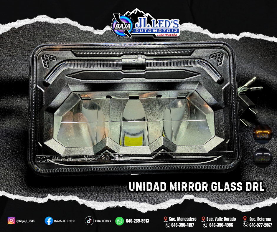 Modelo: Mirror Glass Alta y Baja Formato: Cuadrado Potencia: 18-36w Voltaje: 9-30v Protección: IP67 DOT SAE